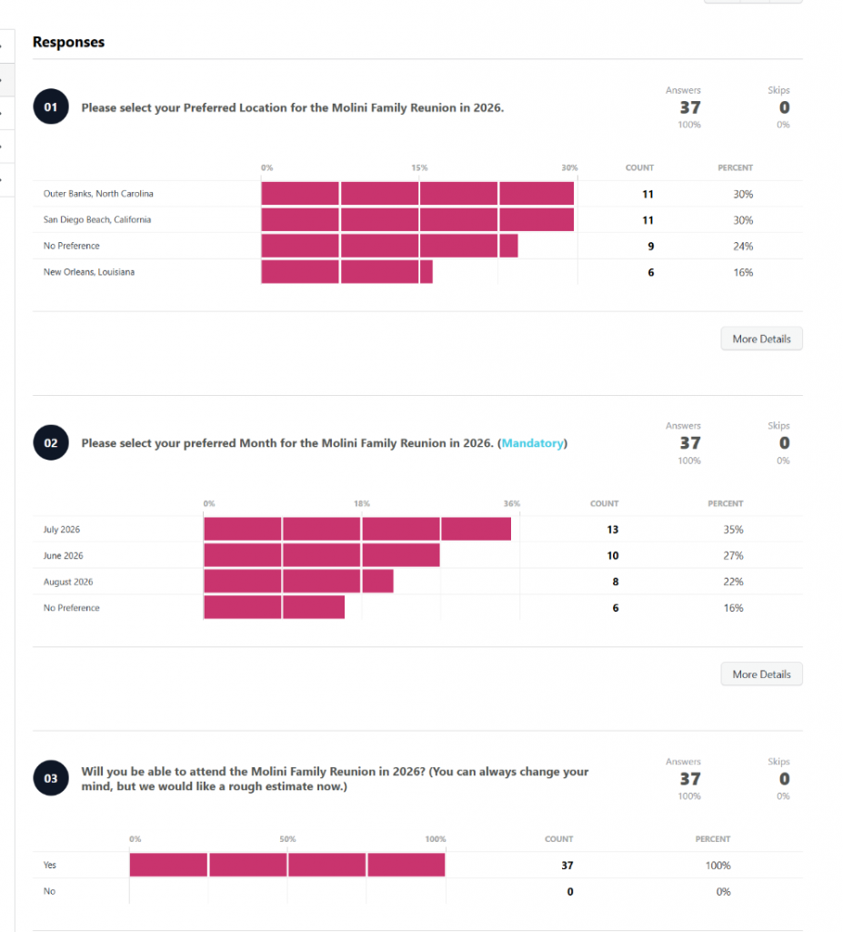 Join the Molini Family Reunion 2026 today—register, share your preferences, and connect with relatives to make this event unforgettable. This section is still under construction. Check back in September for more information.